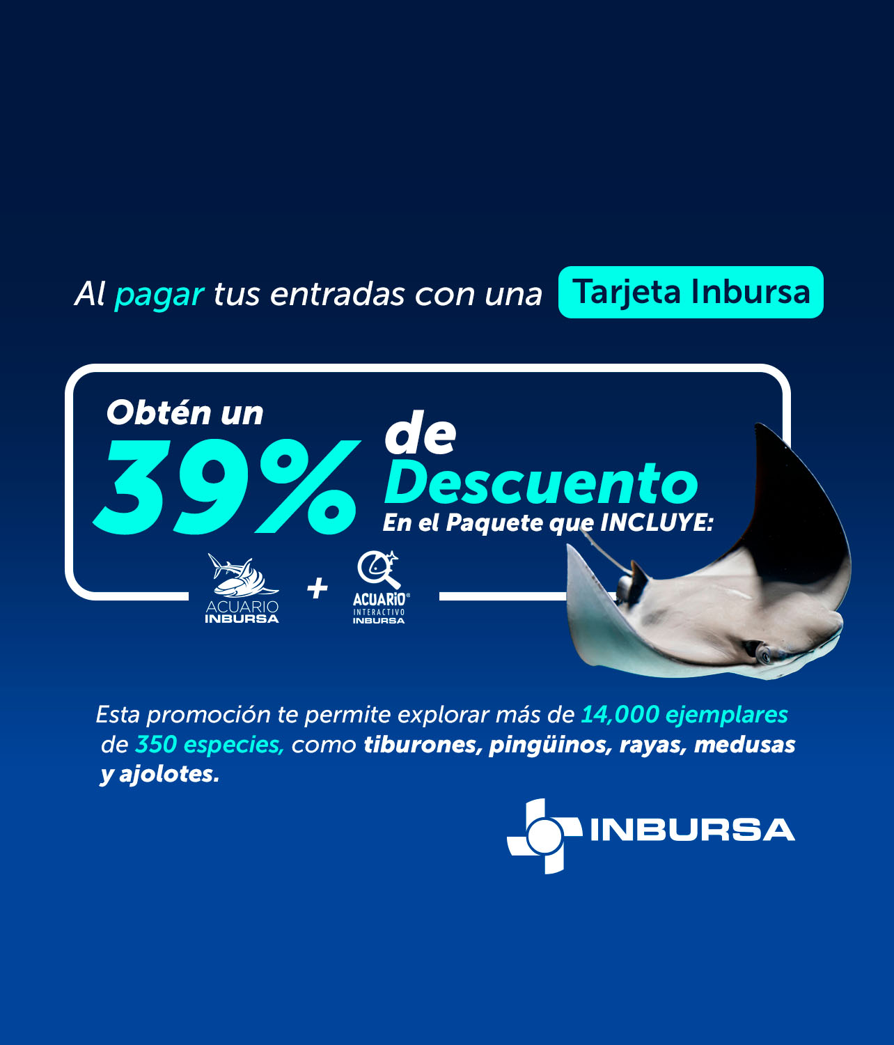 ¡Vive la experiencia de Acuario Inbursa + Acuario Interactivo + Exposición Temporal con un increíble 39% de descuento!